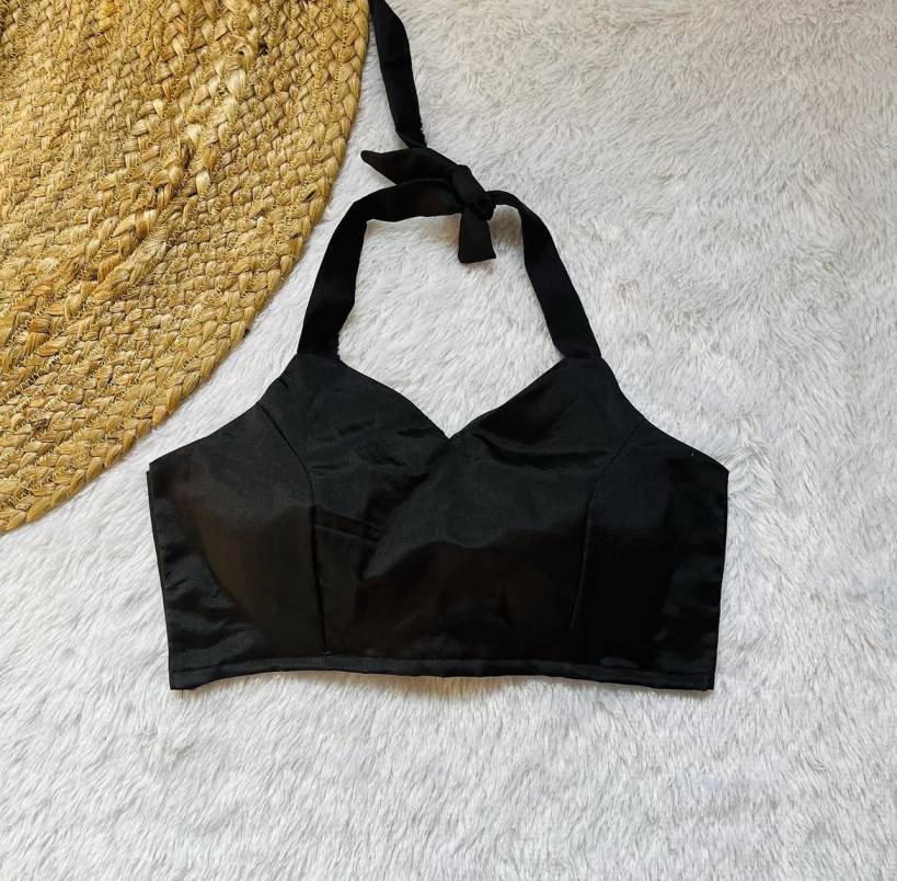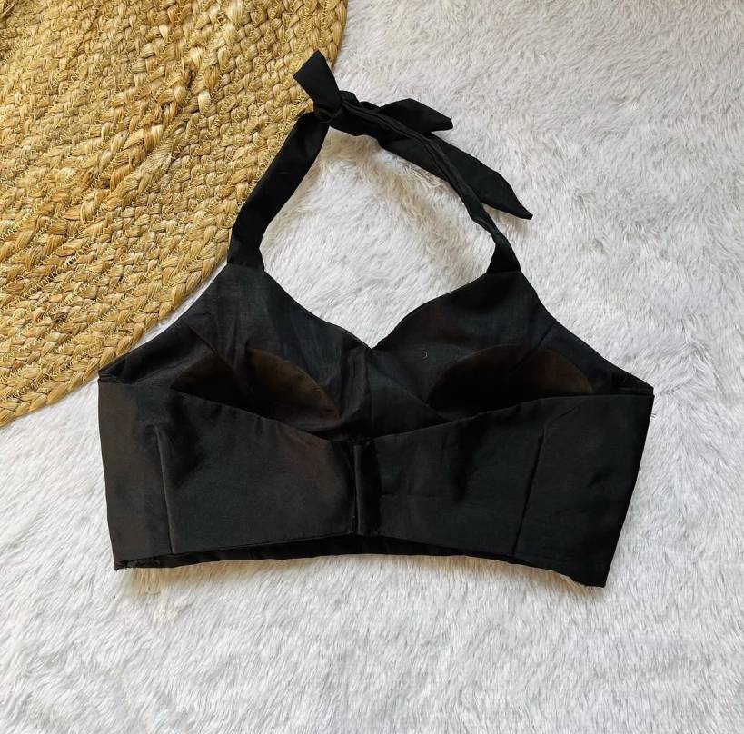 Product Discription –Add elegance to your festive look with this Black Halterneck Raw Blouse! Featuring a stylish halter neck, it’s perfect for traditional occasions. Pair it with lehengas or sarees for a chic festive vibe. Shop now!