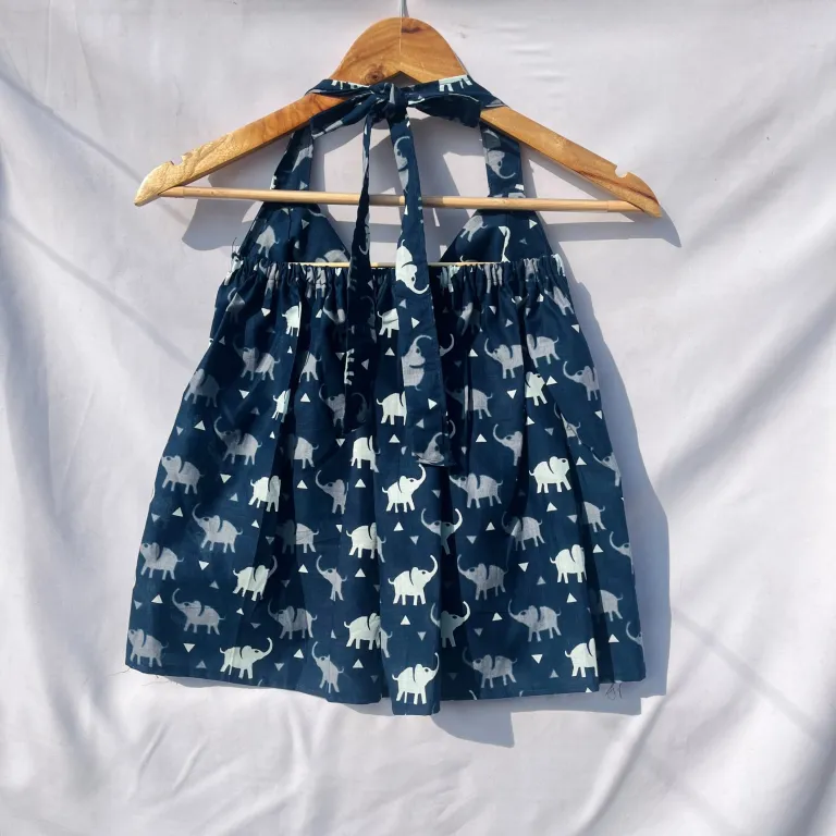 Product Discription- Elevate your style with this Blue Elephant Designer Halterneck Cotton Top, soft, breathable, and effortlessly chic daily wear. The halterneck design in perfect look for your next vacation.