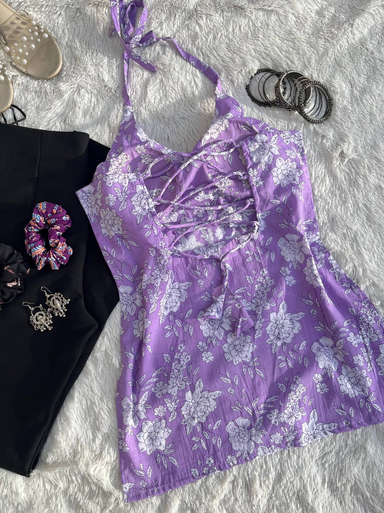 Product Discription- This chic Lavender Halter Neck Back Criss Cross Cotton Kurti features a trendy back criss-cross halter neck design.. Made from breathable, soft cotton fabric,perfect for casual outings or festive occasions, it pairs effortlessly with leggings or palazzos for a fresh, contemporary look.