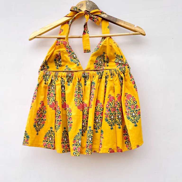 Product Discription- Elevate your style with this Yellow Tree Designer Halterneck Cotton Top , soft, breathable, and effortlessly chic daily wear. The halterneck design in perfect look for your next vacation.